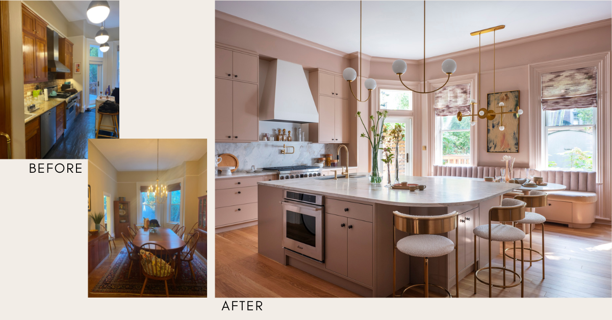 Soft, monochromatic tones bring a refreshing energy to the kitchen while respecting the historic townhome's architectural details.