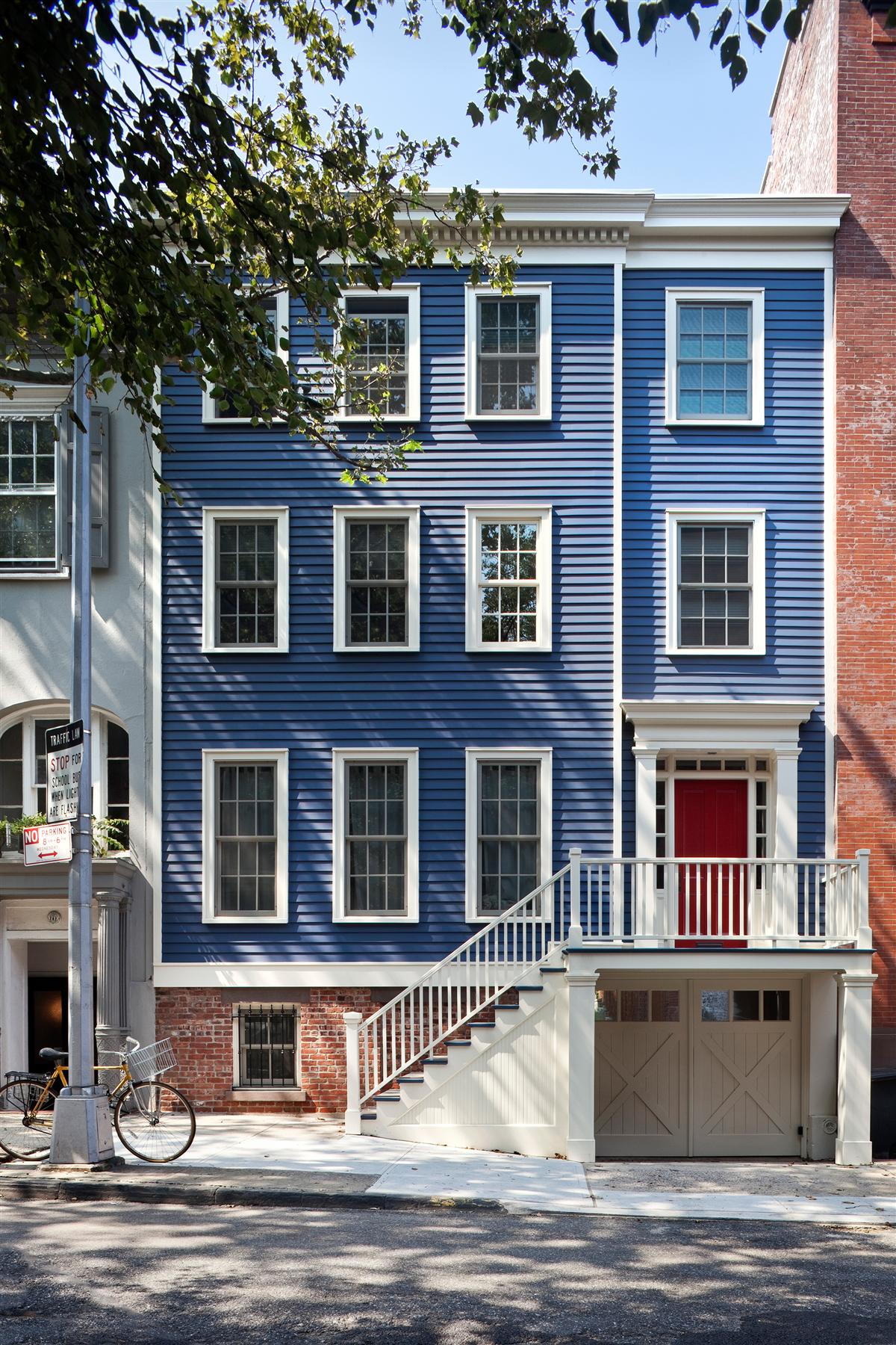 This wood-framed townhouse in Brooklyn Heights, dating from 1816, was renovated and a new front façade was designed to recall the historic façade that had been altered in the 1950s.