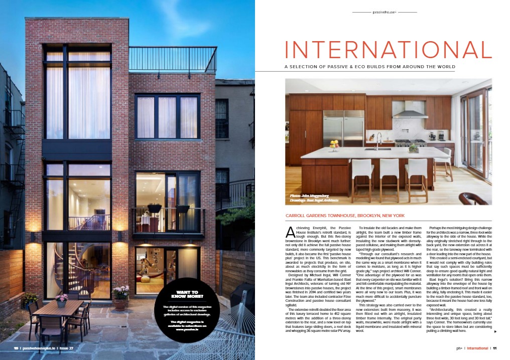 Ireland-based publication Passive House Plus is featuring our Carroll Gardens project as part of their Winter 2018 international selections!