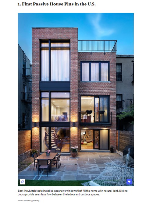 We are happy that our Carroll Gardens Passive House Plus was recognized as #1 in Dwell's Top 5 Energy-Efficient Homes of the Week. We extended its original footprint more than twenty feet into the rear yard, allowing for design freedom on the rear façade. An expansive, triple-glazed system from Zola Windows and Doors on the stepped rear façade incorporates 11-foot-tall assemblies and 3-panel lift & slide doors.