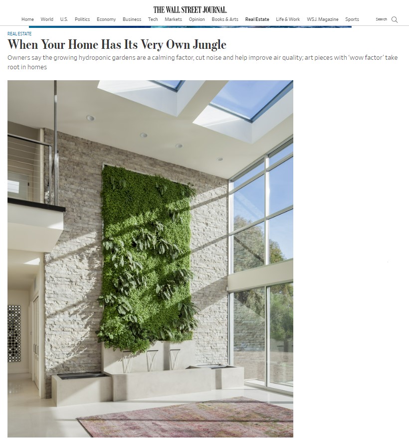 Owners say the growing hydroponic gardens are a calming factor, cut noise and help improve air quality; art pieces with 'wow factor' take root in homes.